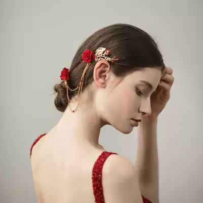 O388 wedding headdress Mori Super fairy beauty type red l flower chain pair comb bridal dress accessories