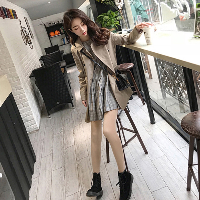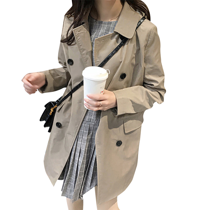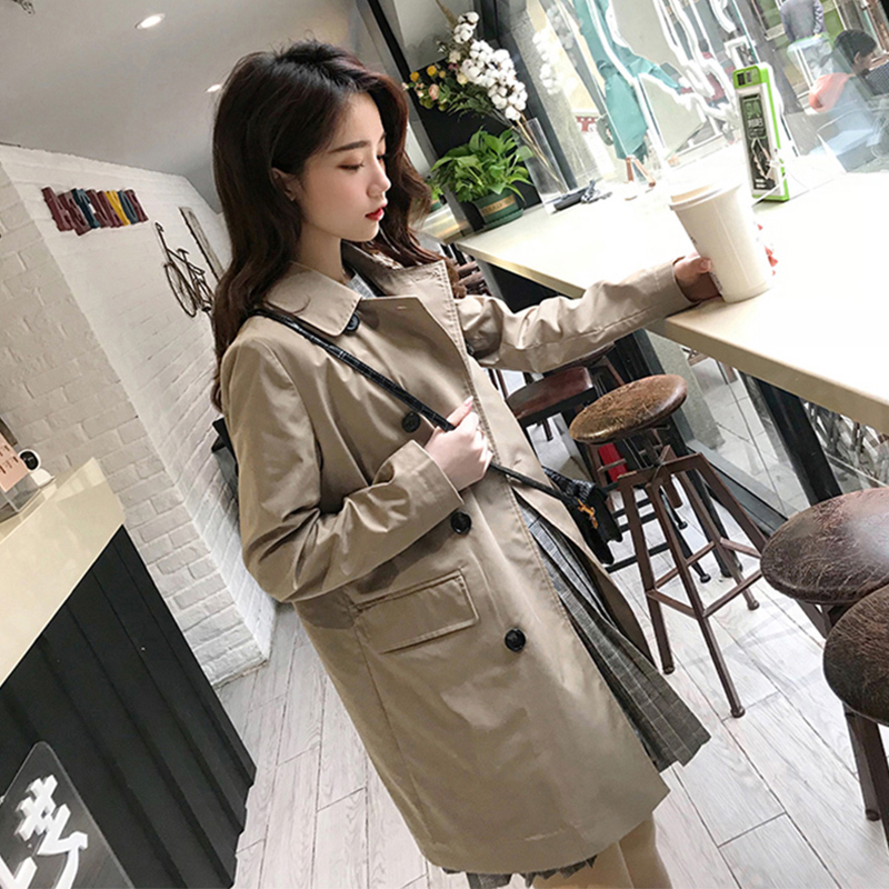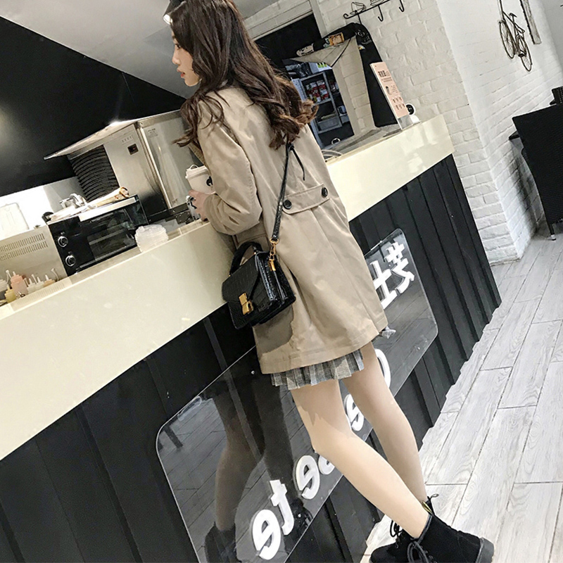 Hong Kong 2020 autumn and winter new women's Korean version of the khaki Hong Kong style chic jacket loose mid-length trench coat women