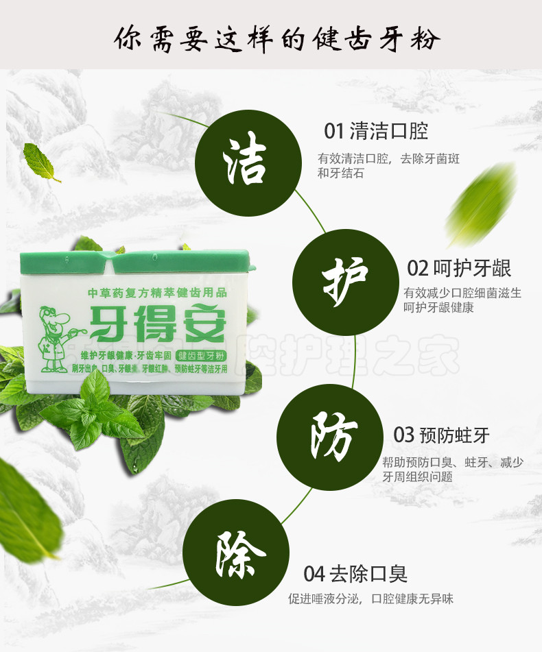 Tooth powder, swollen and sore gums, gum recession, bad breath, tooth cavity, bleeding between teeth, anti-cavity, solid teeth, periodontitis