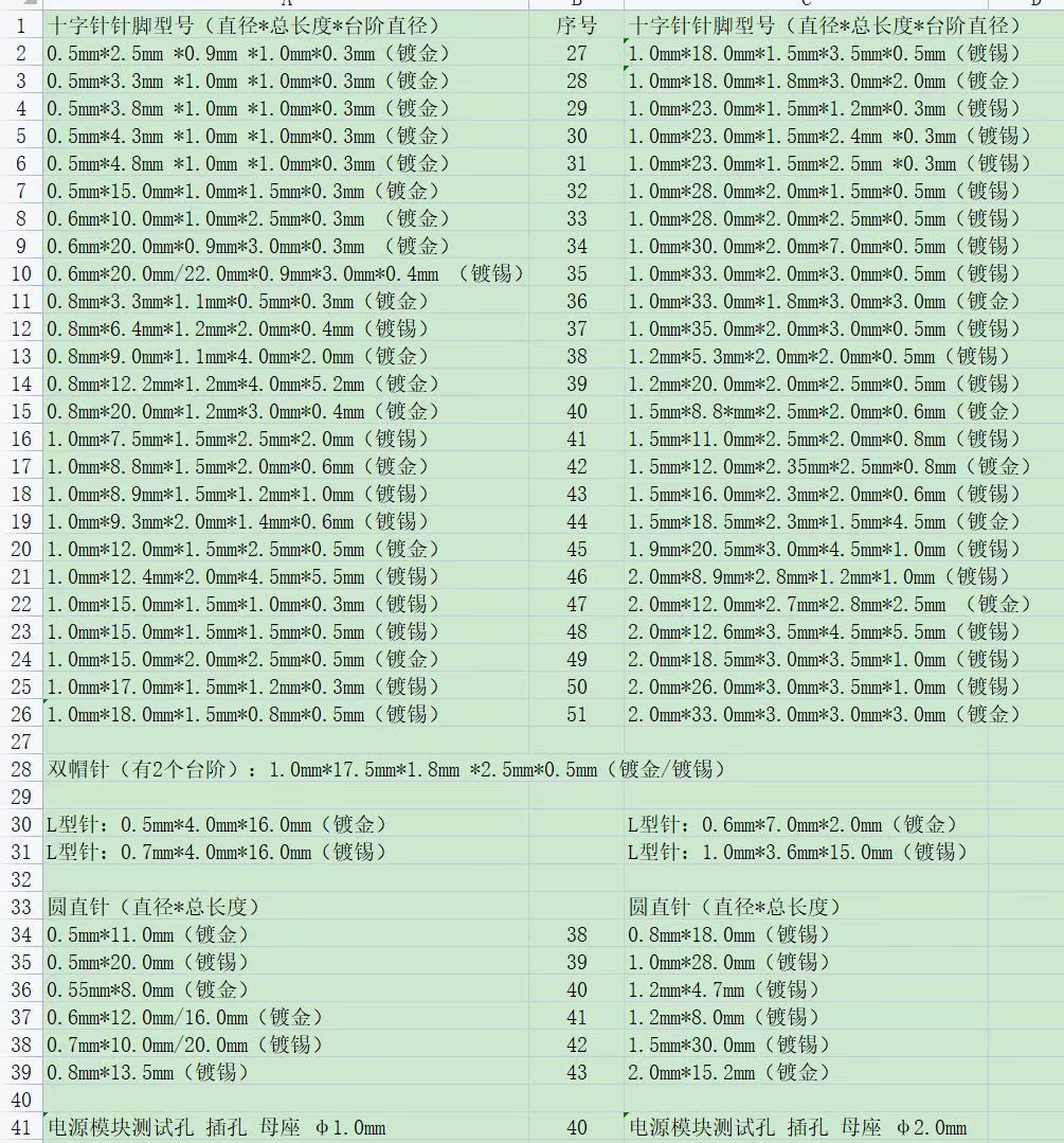 Module power stitch pin pins gilded 0 6mm * 0mm 0mm * 1 1mm 100 packets
