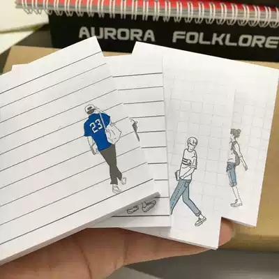 Morning light Post-it notes students with cute walking series hipster N times paste grid bar combination note paper