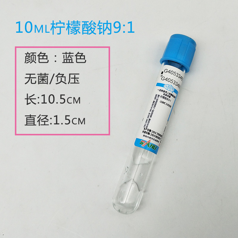 Sanli Sodium Citrate Sodium Citrate 9:1 Anticoagulation Tube Disposable Vacuum Aseptic Blood Collection Tube Serum Tube 10ml