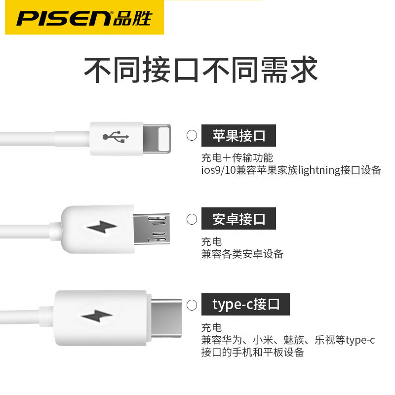 Pinsheng data line three-in-one suitable for Apple Android type-c one-to-three car multi-purpose mobile phone charging Pinsheng multi-head data line two-in-one