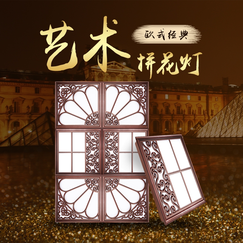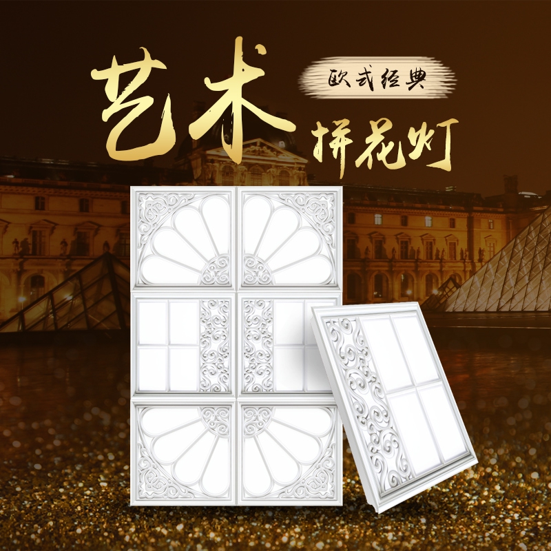 Living room integrated ceiling aluminium buckle plate parquet combined LED light 450X450 recessed flat lamp Cuisine 45X45