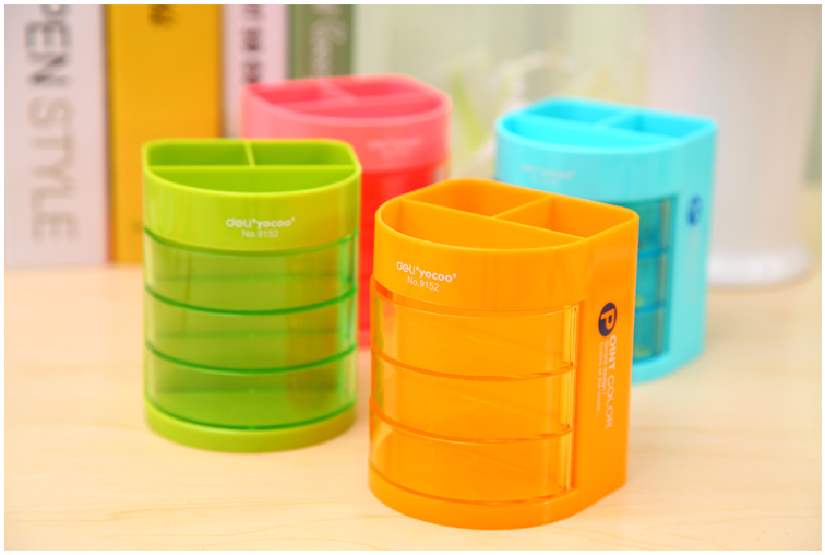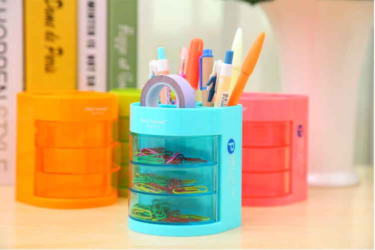 Deli 9152 desktop simple storage multi-function cute creative pen holder candy-colored plastic pen holder pen holder