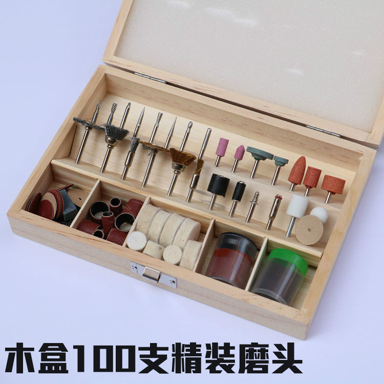 Wooden Box 100 hardcover grinding head grinding wheel 100 bearing grinding head 30 metal grinding head grinding wheel 10 loading grinding head wool 10 polishing head grinding wheel cutting blade 5 pieces metal cutting