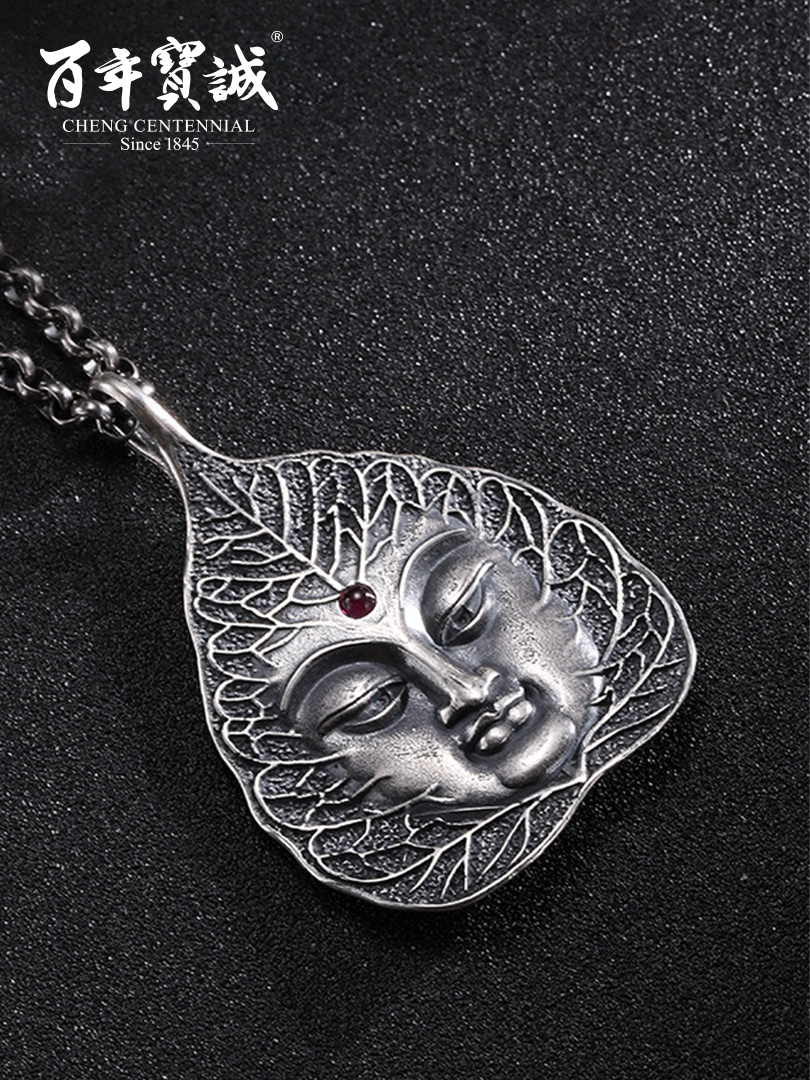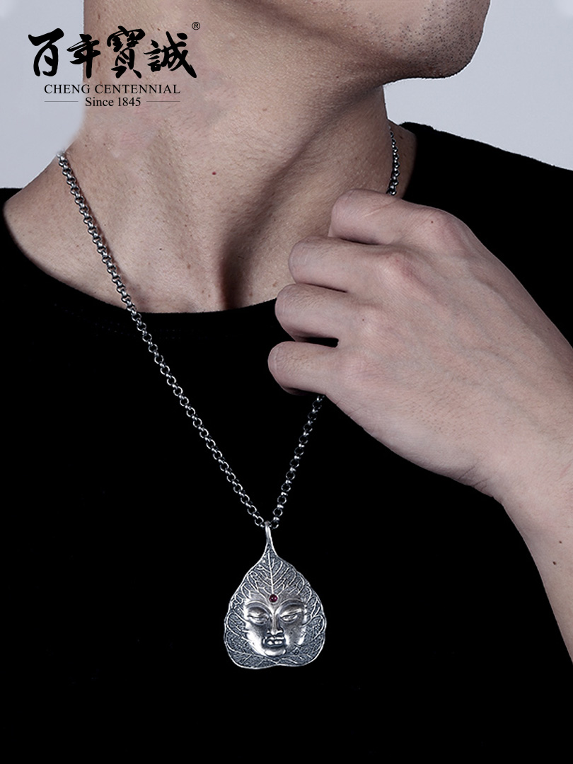 QCTT original design full silver ethnic wind Buddha necklace women's full silver Buddha pendant men's long silver chain