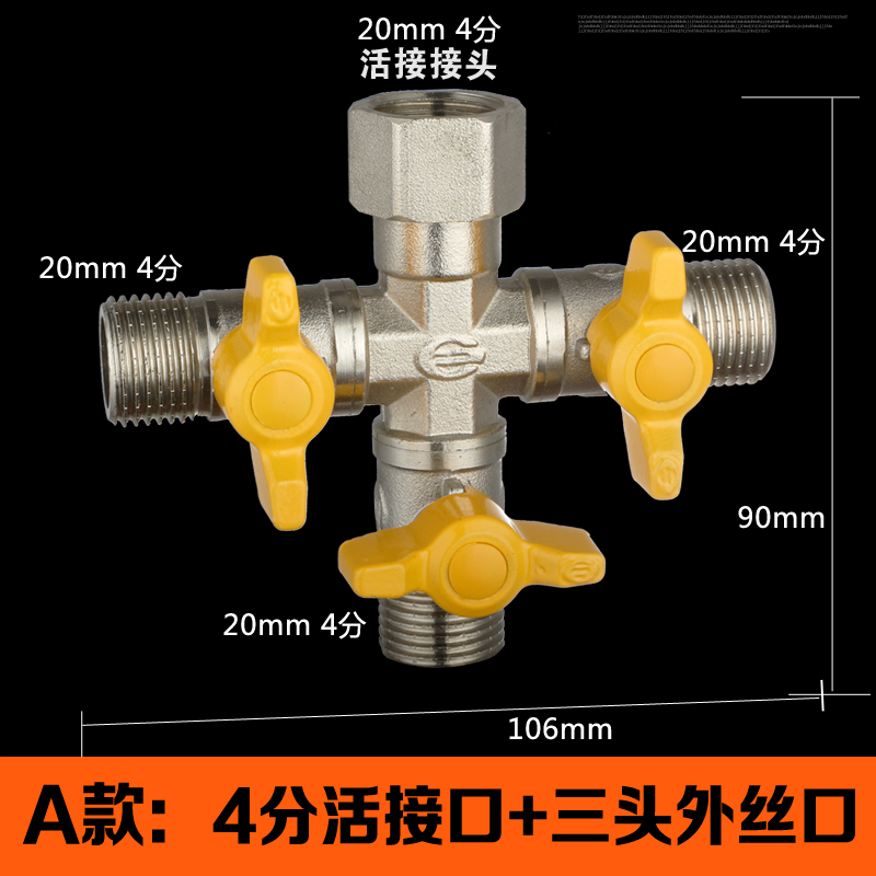 All-copper 4-point live connection three-way four-way gas valve gas valve gas switch ball valve one-point three-way joint