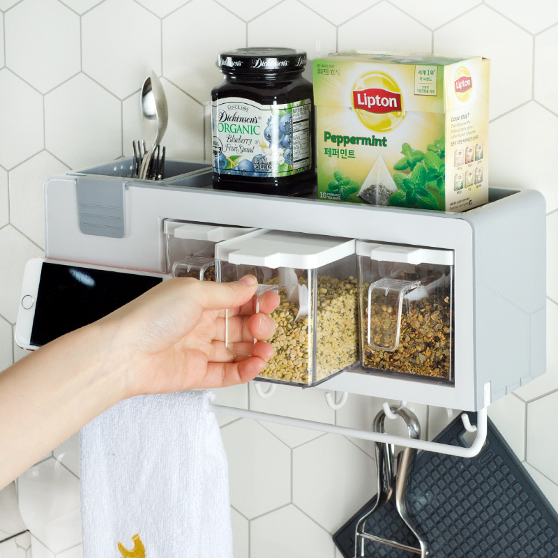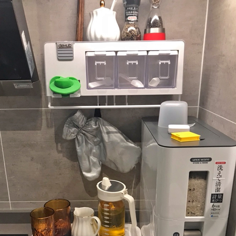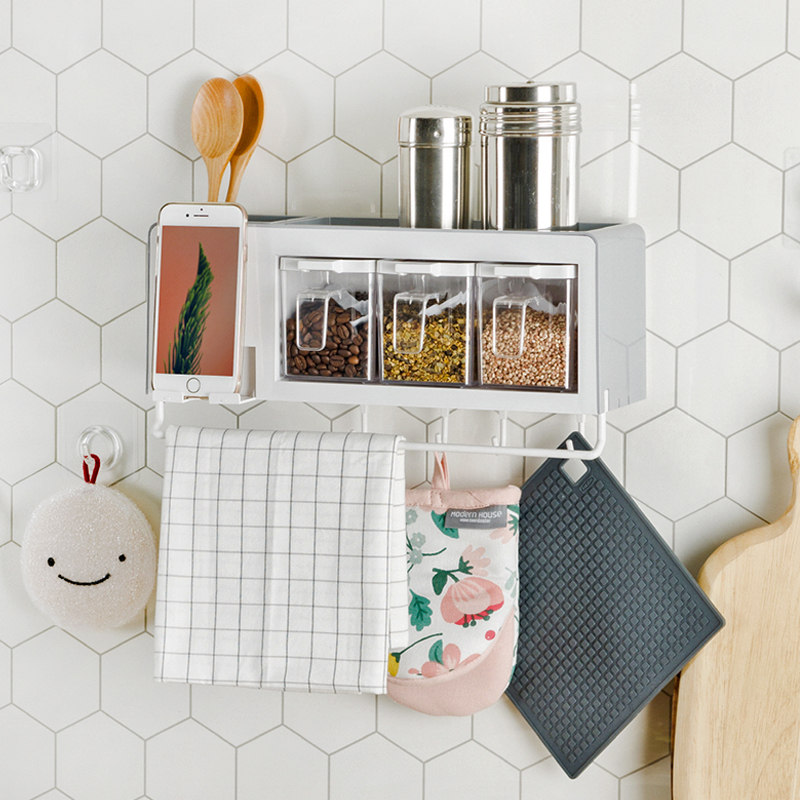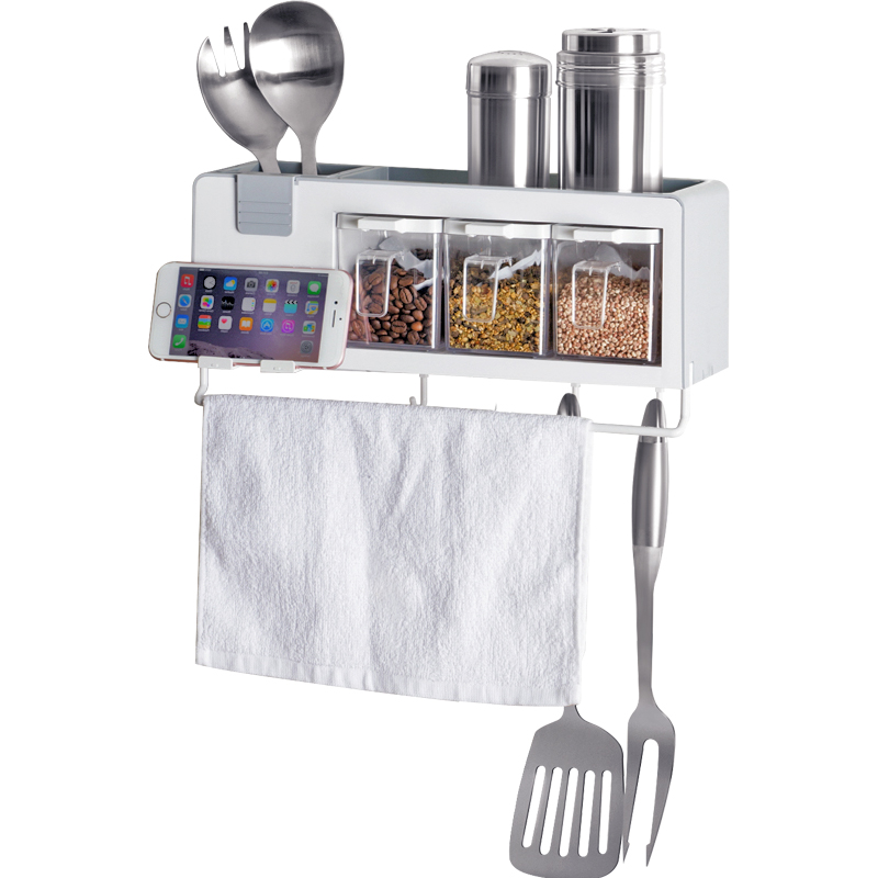 Kitchen Shelve Seasoning Containing Layer Rack Wall-mounted Seasoning Hanger Free of perforated Home Large full condiment containing box