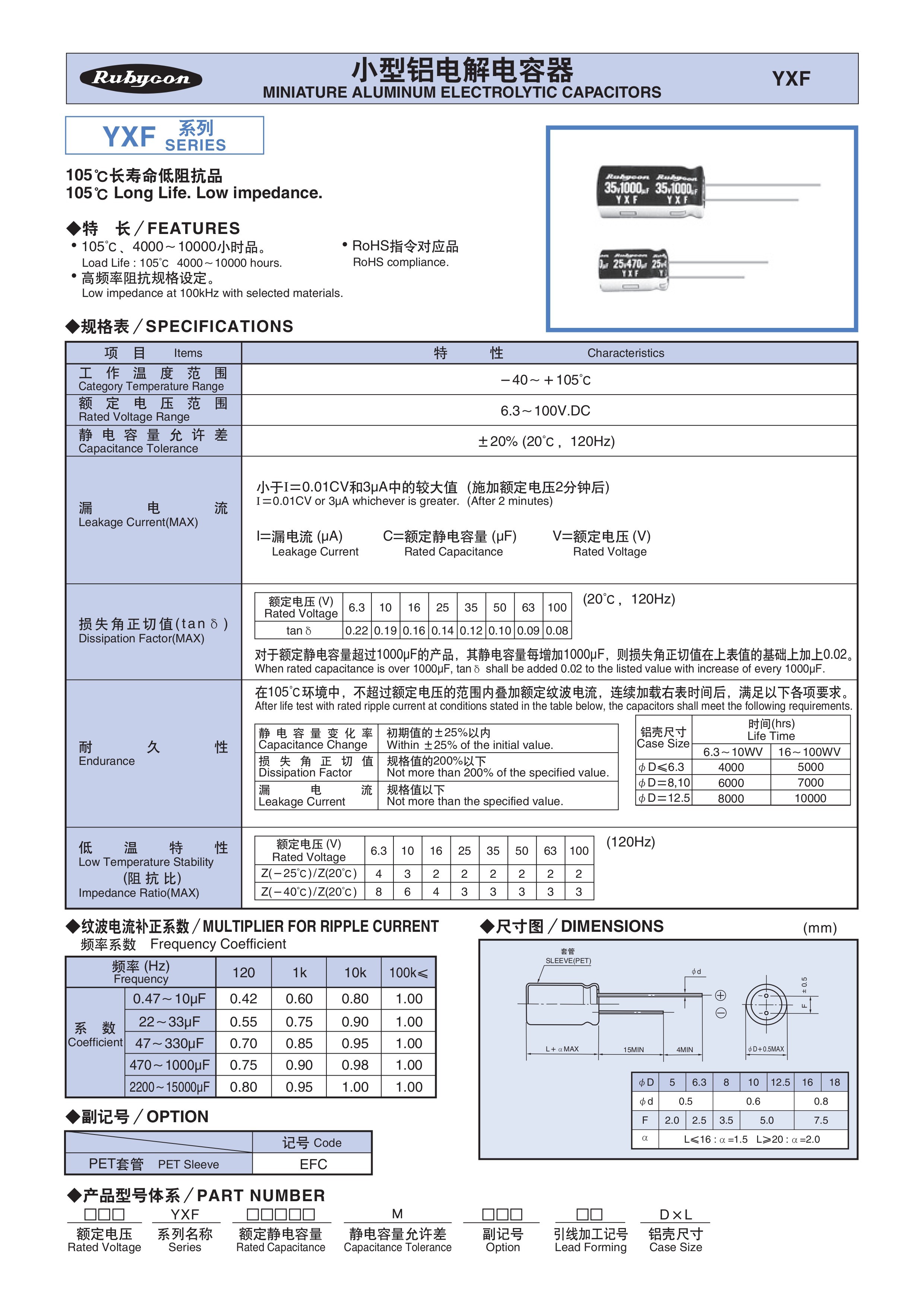 220uF25V imported high frequency ruby electrolytic capacitor 25V220uF YXJ (200) 6 3X11