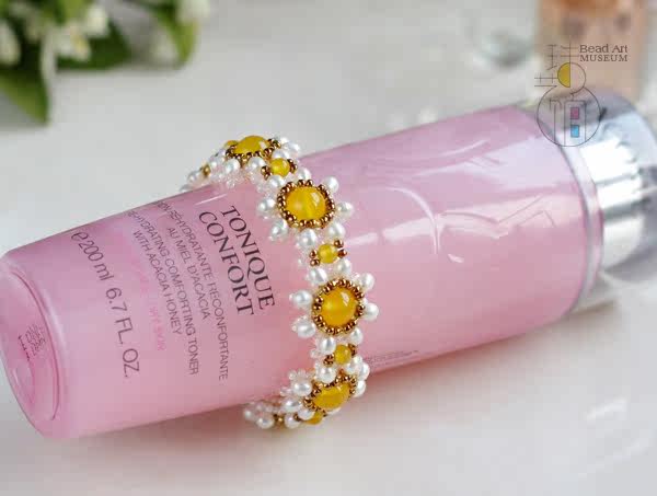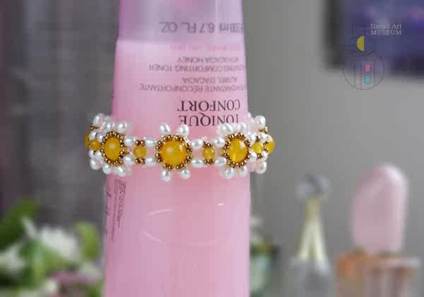 Original Handmade Natural Freshwater Pearl Yellow Agate Small Daisy Bracelet