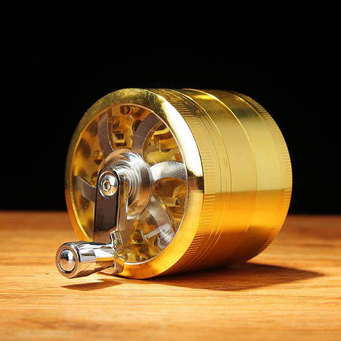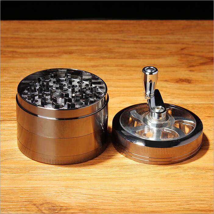 Large metal four-layer hand-cranked pipe tobacco grinder Heather wood pipe accessories grinder grinder cigarette grinder