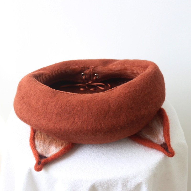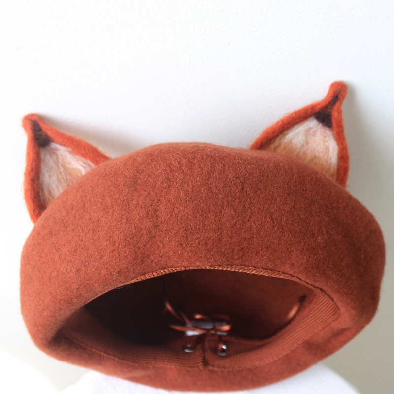 Autumn and winter women's hat cute ears wool fox ears beret forest series painter hat parent-child children's beret