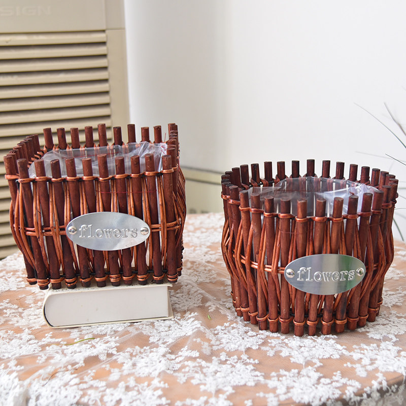 Rattan flower pot living room home decoration creative personality golden kudzu plant garden flower basket rattan weaving flower arrangement cute
