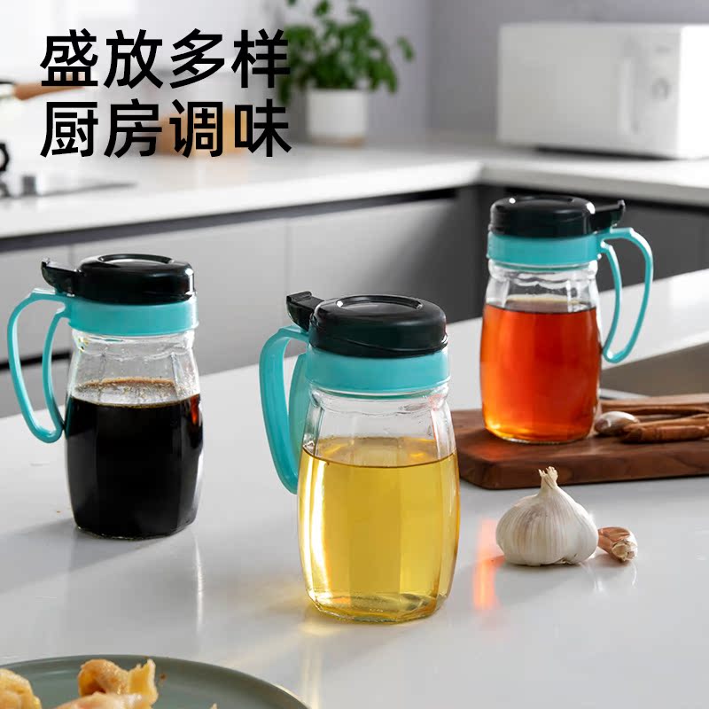 Anlig Glass Transparent Sauce Bottle Oil Jug Oil Vinegar Jar Vinegar Bottle Sauce Bottle for home opening and closing leakproof suit