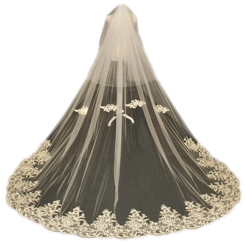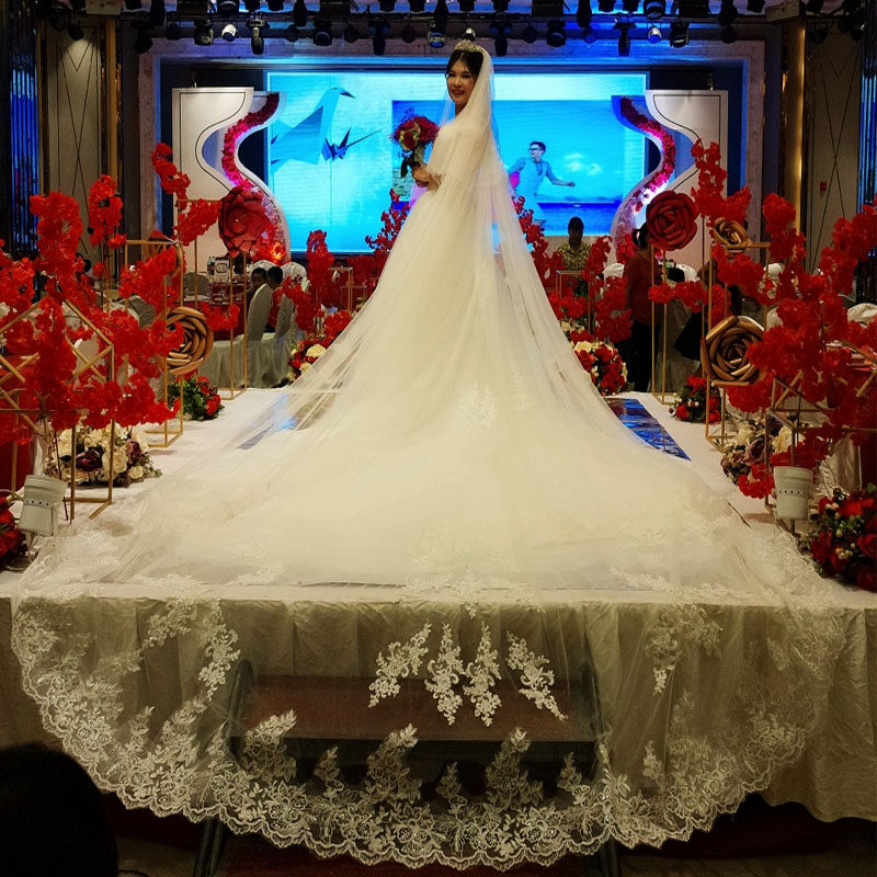 Star veil bride main wedding dress white long version champagne trailing veil headdress super fairy forest wedding retro