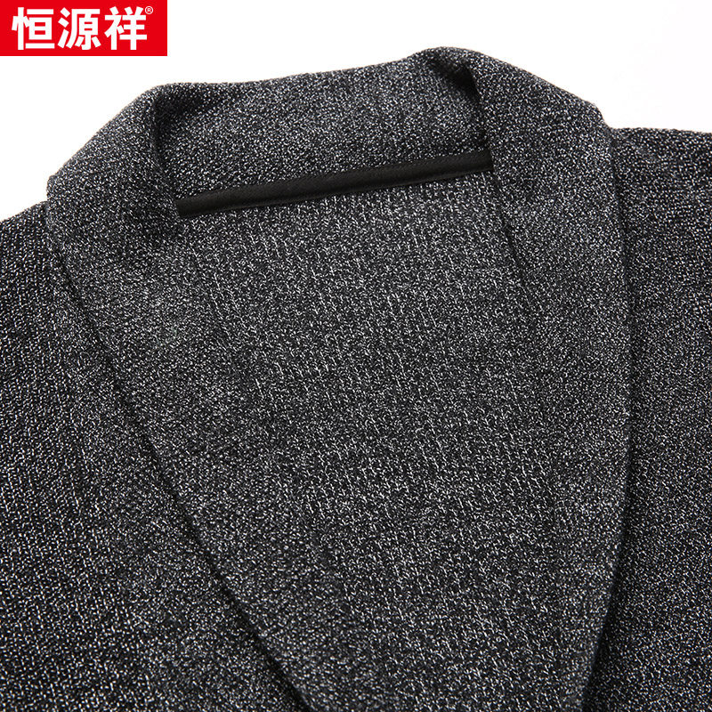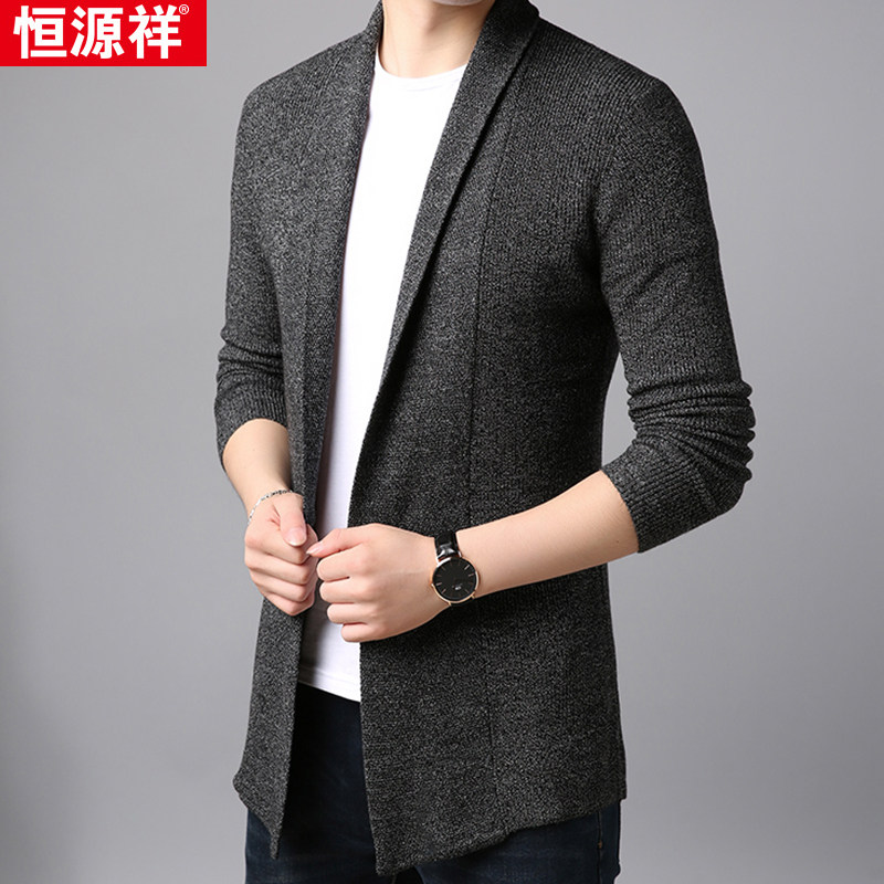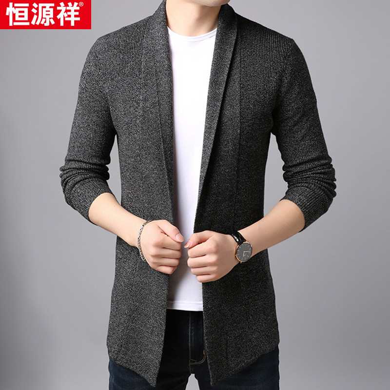 Hengyuanxiang men's autumn and winter thick cardigan men's wool mid-length knit trench coat coat outside wearing tide