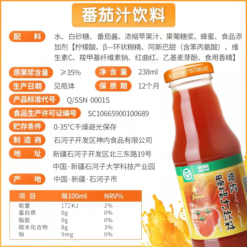 God NeXinjiang special production of tomato juice 238ml * 20 bottles of juice concentrated drink tomato light cut off fruit and vegetable juice