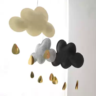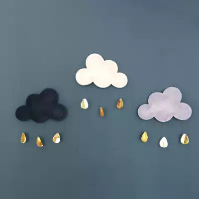 Cloud ornaments cute felt raindrops clouds in the air hanging wall pendants golden glitter home decorations