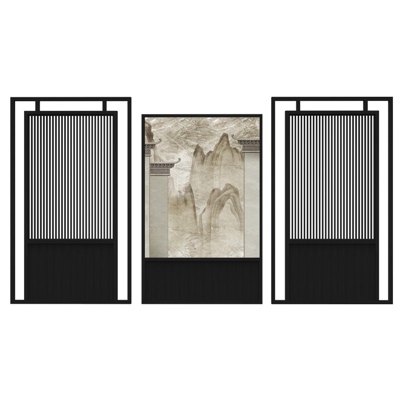 Chinese solid wood hollow screen partition entrance living room background wall Hotel dining room seat screen Semi-transparent yarn combination screen