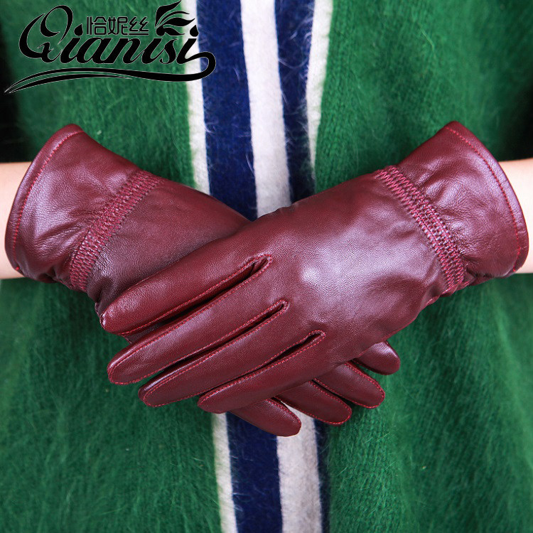 Haining leather gloves women's autumn and winter plus velvet thick warm Korean version riding electric car thin leather gloves