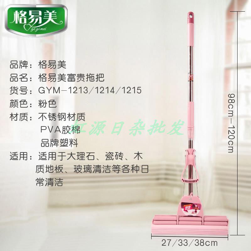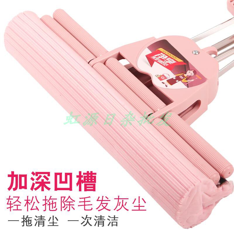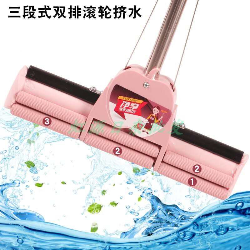Ge Yi Mei rubber cotton mop three-stage double row roller squeeze water household absorbent sponge wipe mop head telescopic rod