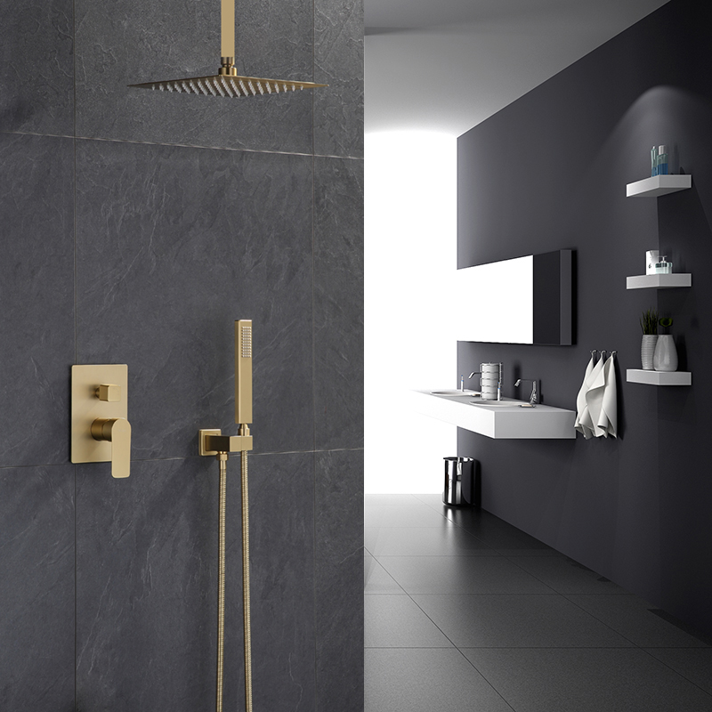 Two-function crossbar 10-inch showerhead Brushed gold two-function suspended ceiling 10-inch showerhead Brushed gold two-function crossbar 12-inch showerhead Brushed gold two-function suspended ceiling