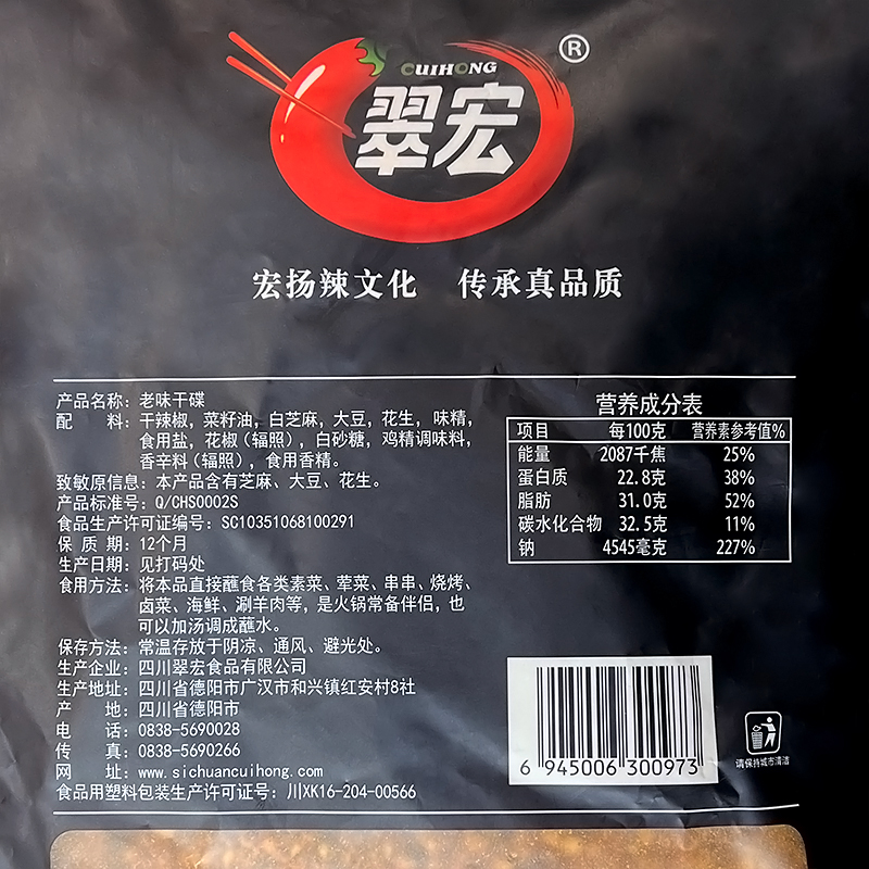 Cuihong Old Flavor Dry Dish 750g Sichuan Pepper Noodles Hot Pot BBQ Meat Skewers Dip Peanut Crushed Sea Pepper Noodles