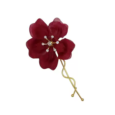 O390 new Chinese wine red bridal headdress fresh and simple diamond yarn flower hairpin dress styling hair accessories