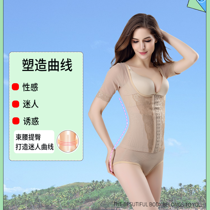 Breathable ribs Strengthening of the collection of the close-up bunches waist Two-style shapen clothes Women's summer ultra-thin suit Beauty underwear lift the arms