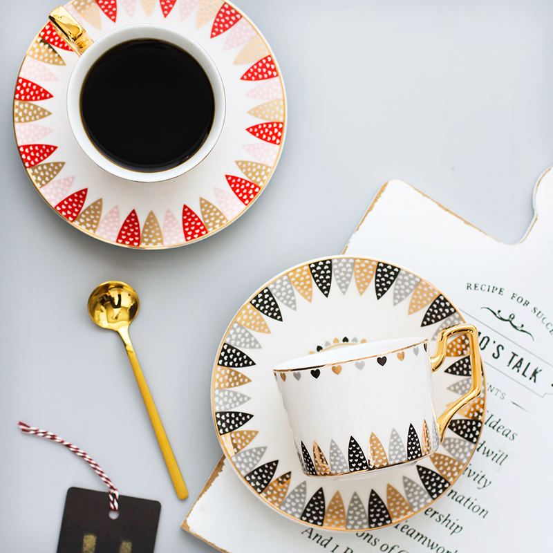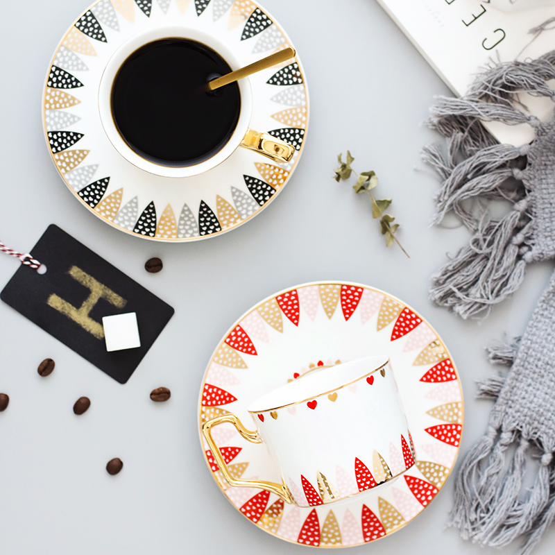 Simple couple coffee cup set creative flower cup tea cup Phnom Penh ceramic tea cup household tea with spoon