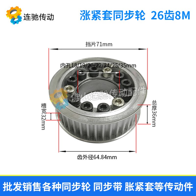 Tension sleeve synchronous wheel aluminum alloy belt wheel 8M 26 teeth inner hole 18 19 19 22 22 24 35 35 belt pulley