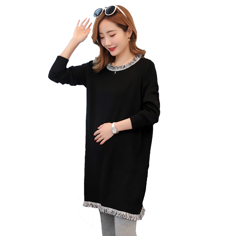 Pregnant women's autumn coat medium and long loose sweater 2021 new Korean sweater skirt tide mom long sleeve dress