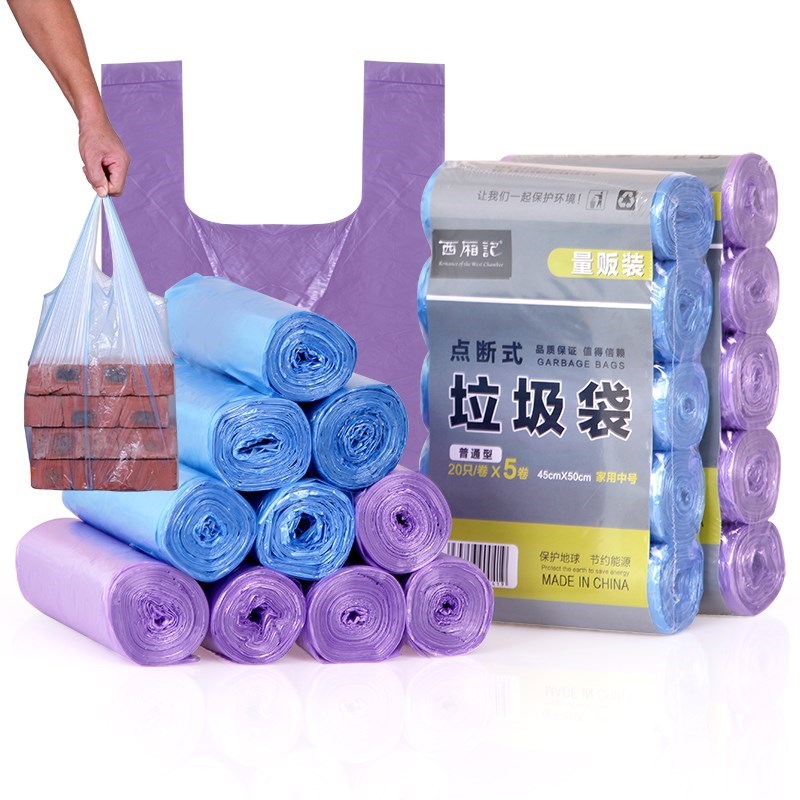 (thickened 5 rolls of 100)Portable garbage bag Household kitchen garbage bag Large vest garbage bag