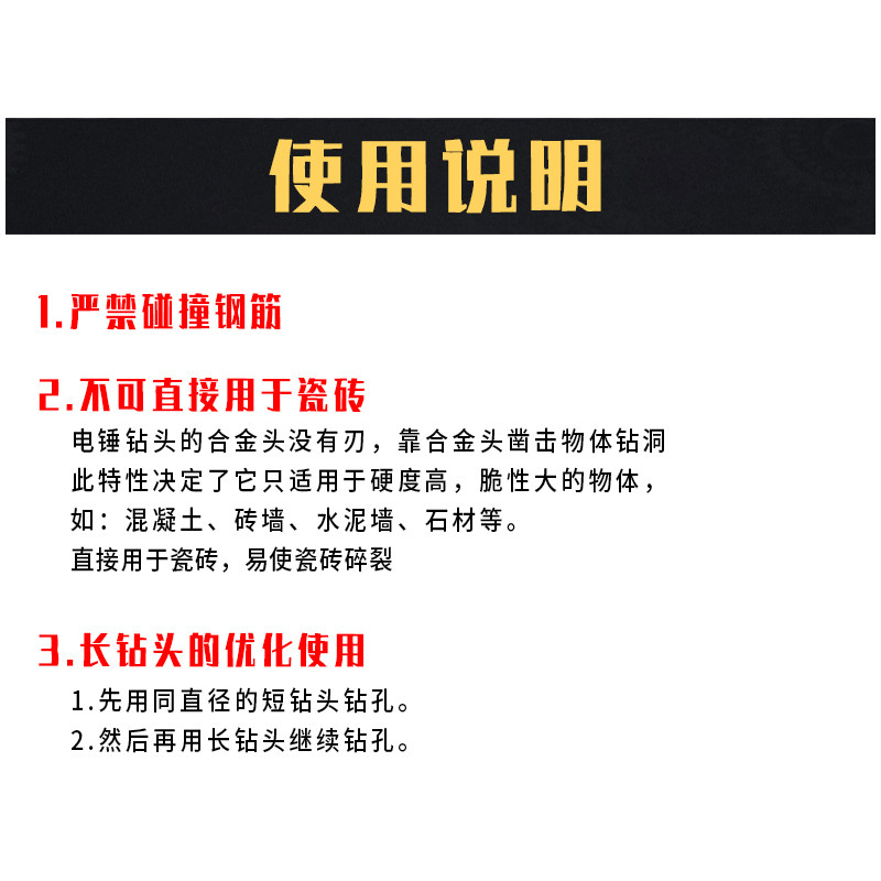 Round handle rotary hammer drill bit lengthened 8*500 10*600mm Cement brick wall concrete wall round head impact drill