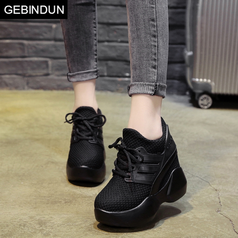 GEBINDU thick soles heightened women's shoes 12cm high heel and spring and autumn Han plate pine sneakers with casual shoes