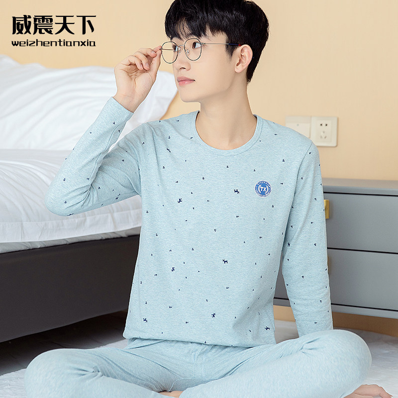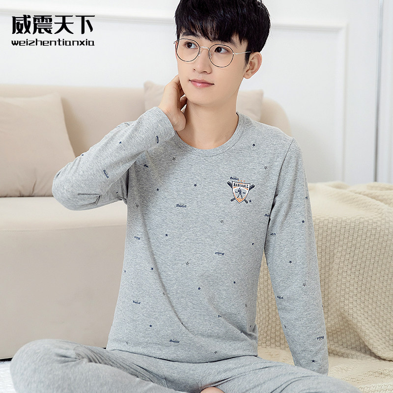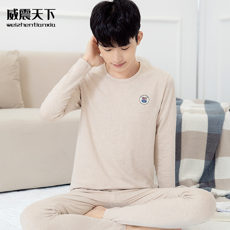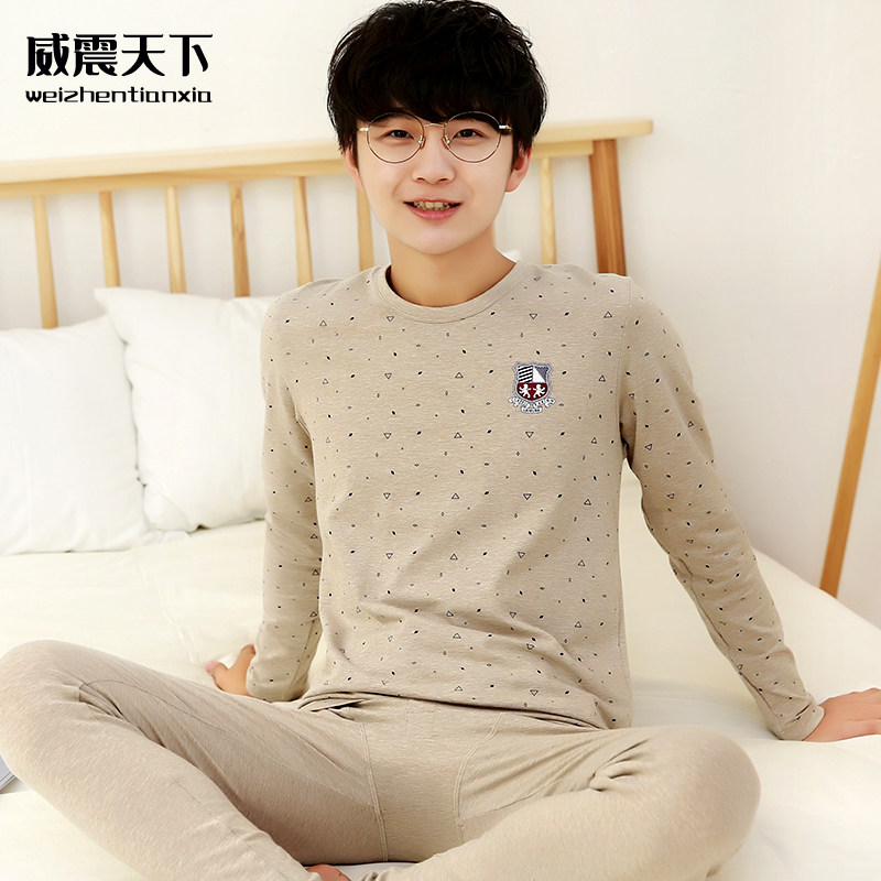 Teenagers autumn clothing sanitary pants set cotton men's cotton junior high school students Lycra cotton sweater thin heating clothes