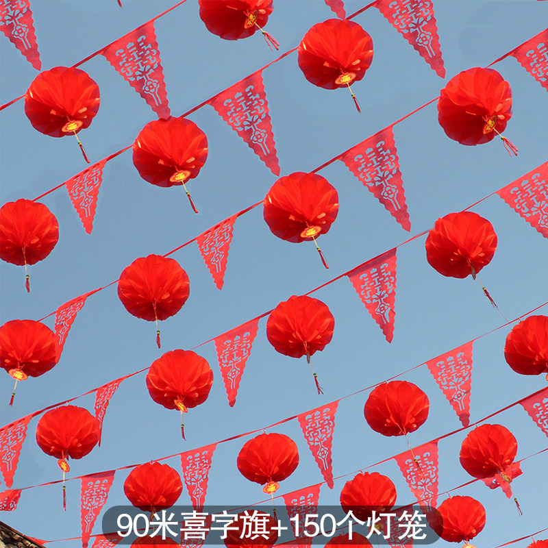 Spring Festival Little Red Lantern Pendant Wedding wedding Happy Wedding Festive Outdoor New Year Decorations arranged Paper lantern hanging decorations
