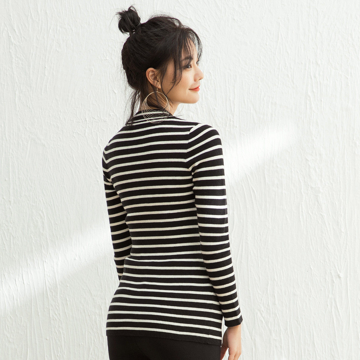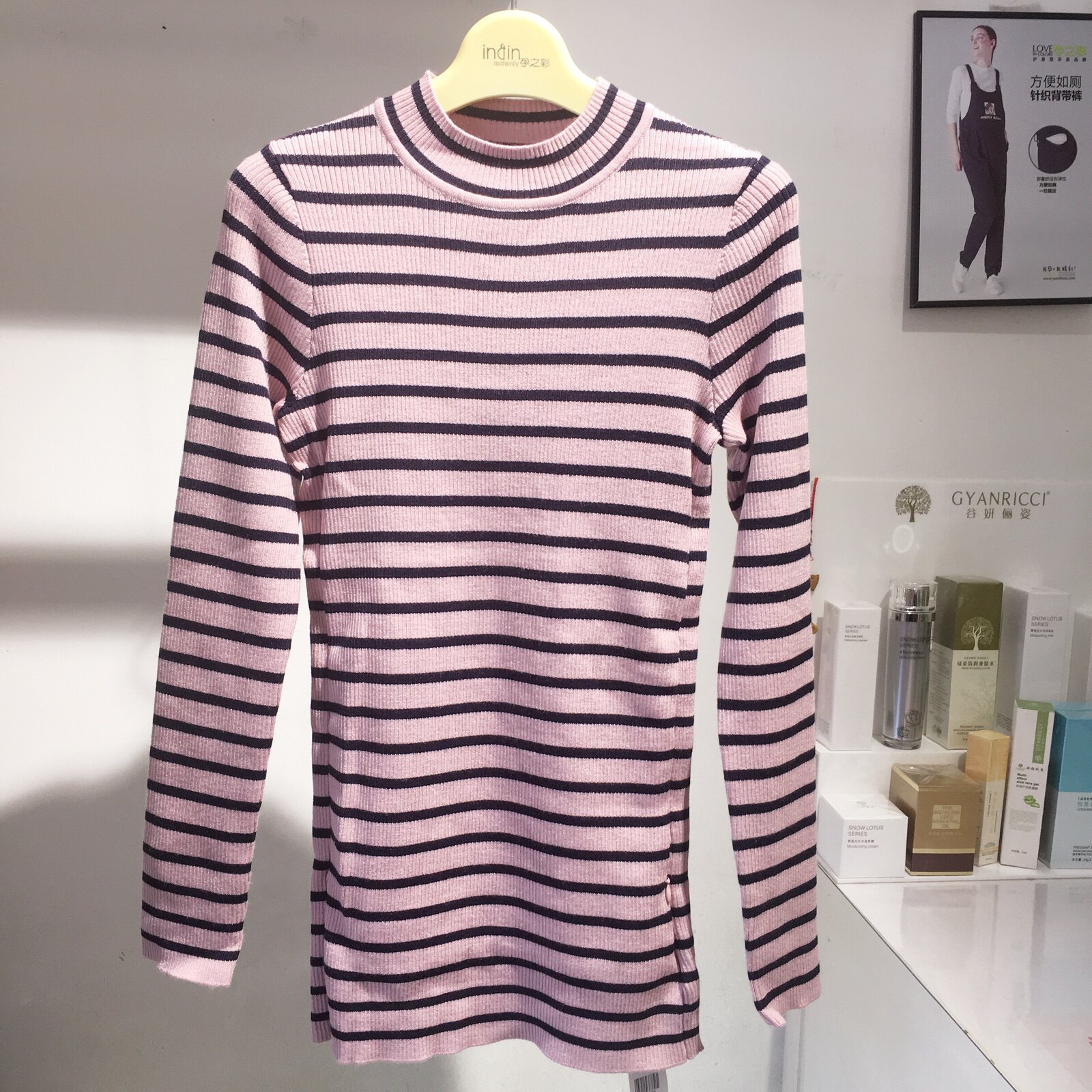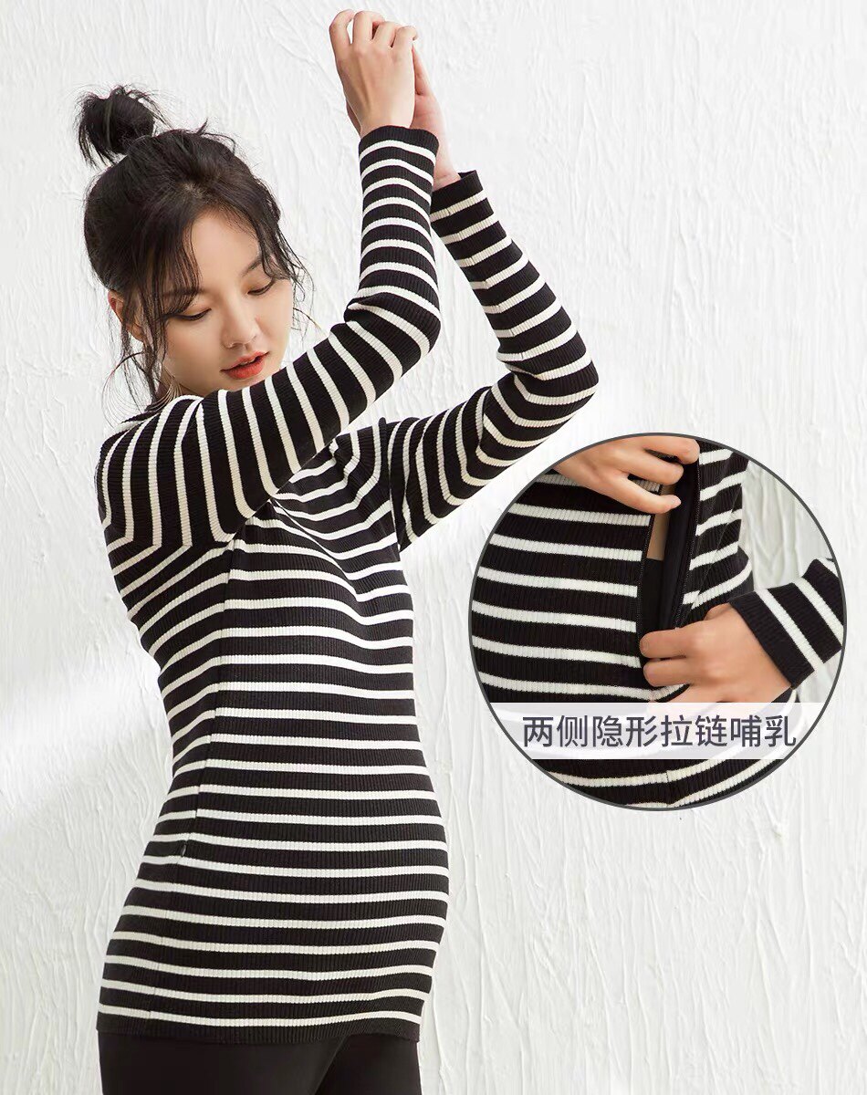 Pregnancy Color Pregnancy Woman Dress Spring Autumn New Korean Version Fashion High Play Long Sleeve 100 Hitch Knit Striped Bottom Breastfeeding Sweater