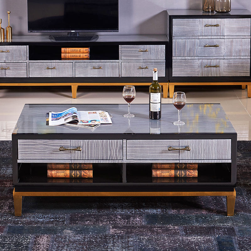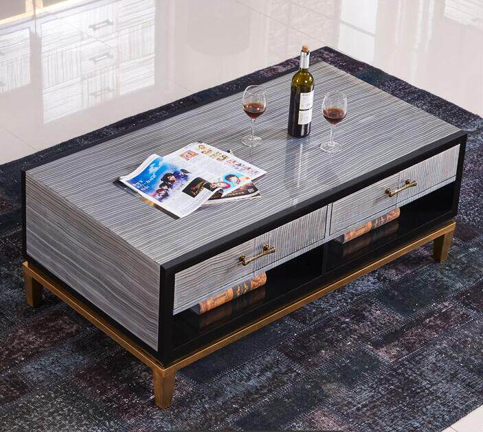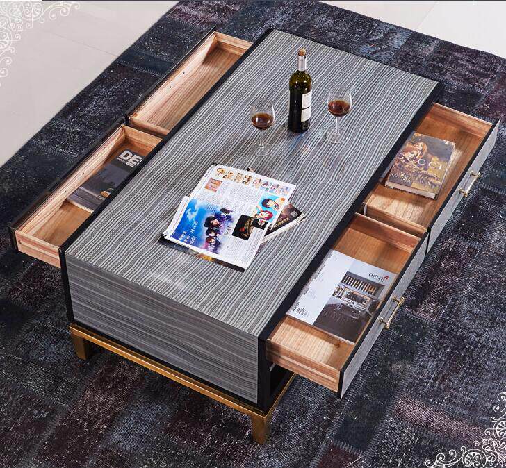 Light and luxurious Nordic modern minimalist Cosmetic Drawers Tea Table Small House Type Baking Varnish Gilded Multifunctional Living Room Solid Wood Tea Table