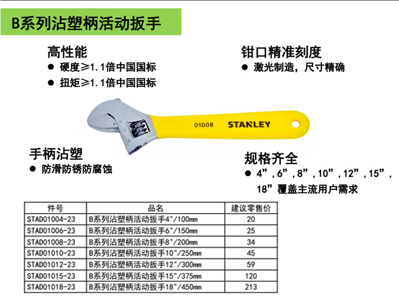 6 inch Full length 156mm opening 19mm8 inch Full length 207mm opening 24mm10 inch Full length 257mm opening 30mm12 inch Total length 308mm opening 36 opening 36