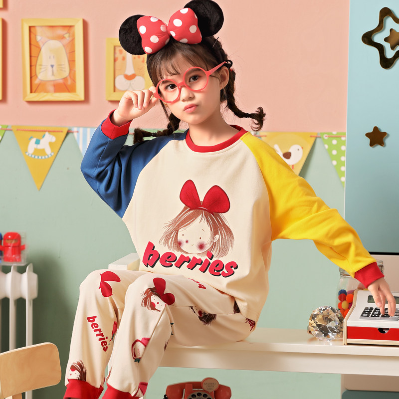 Girls pajamas long-sleeved spring and autumn pure cotton 5-7-9-11-13-15 primary and secondary school students suit girls cute home clothes