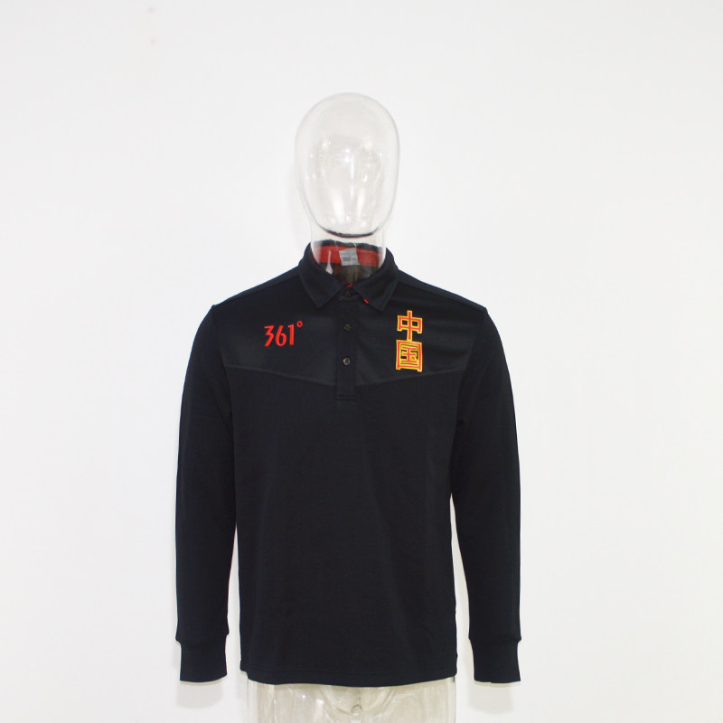 361 degree sponsored the Chinese delegation's national team black long - sleeve POLO shirt