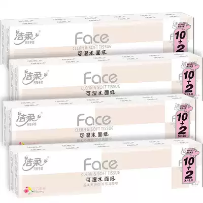 Jie soft paper handkerchief 48 packs of napkins small can wet water face four layers of 8 pieces of flower fragrant face towels
