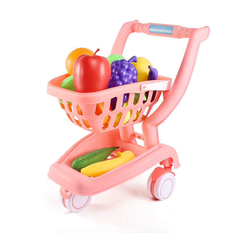 Children's shopping cart Costume House Wine Toy Supermarket Big Number Trolley Emulation Food Fruit Vegetable Suit Chiclele