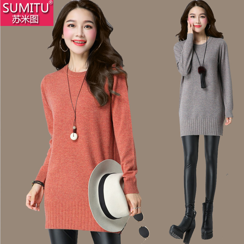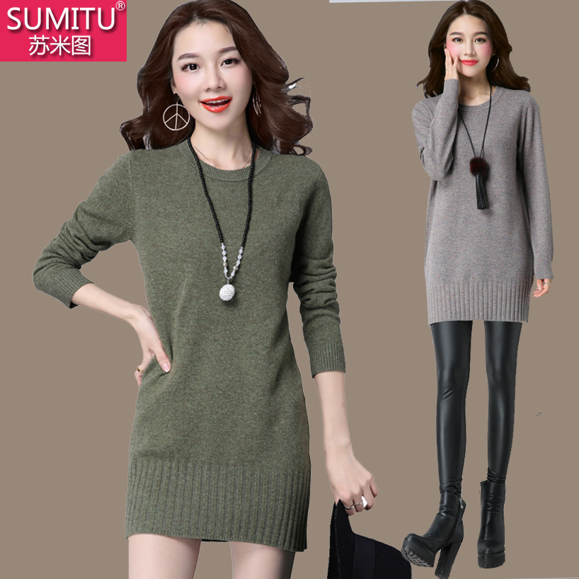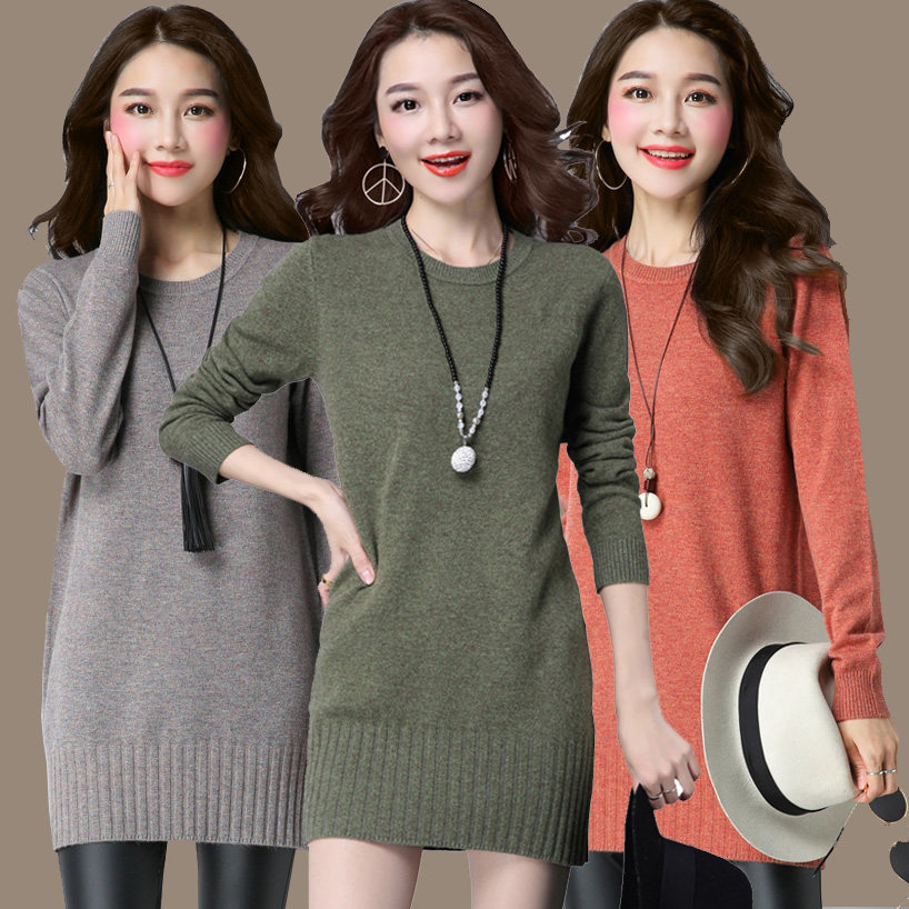 Sweater women's mid-length version 2022 new Korean version round neck loose pullover knitted bottoming shirt warm sweater skirt winter
