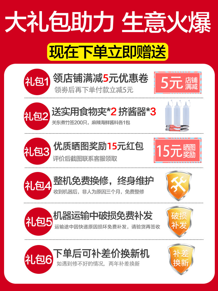 (Classic) Mechanical Burger Machine (Upgraded)Smart Burger Machine (Classic)Mechanical Large Burger Machine (Upgraded)Smart Large Burger Machine (Upgraded)Smart Burger Machine + Blue and White Single Cylinder Fryer (Upgraded)Smart Burger Machine + Blue and White Double Cylinder Fryer (Upgraded)Smart Burger Machine + Hooded Sausage Machine (Upgraded)Smart Large Burger Machine + Hooded Sausage Machine (Upgraded)Smart Burger Machine + Blue and White Single Cylinder Oven + Hooded Sausage Machine (Upgraded) Smart Large Burger Machine + Blue and White Single Cylinder Fryer + Hooded Sausage Machine (Upgraded) Smart burger machine + coke machine