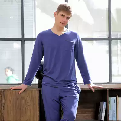 Han Cai pajamas men's long sleeve thin two-piece Modal spring autumn large size loose can be worn outside home wear suit