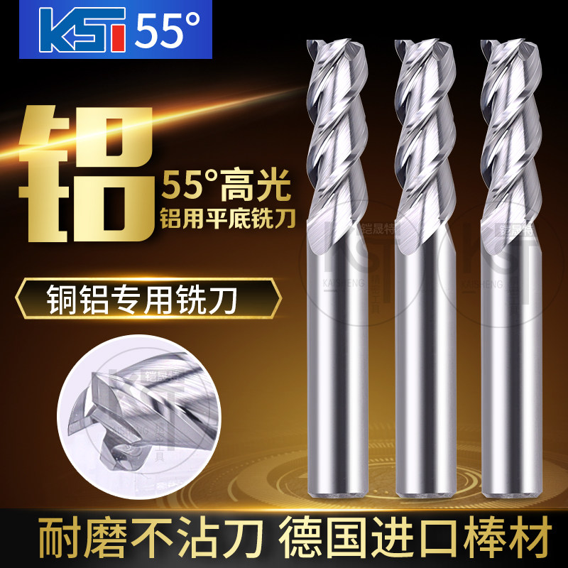 KST55-degree aluminum milling cutter high-gloss aluminum cutter copper aluminum alloy special milling cutter alloy milling cutter 3 blades 75L100L