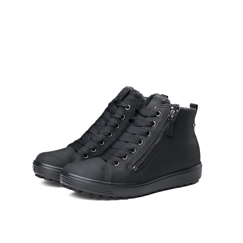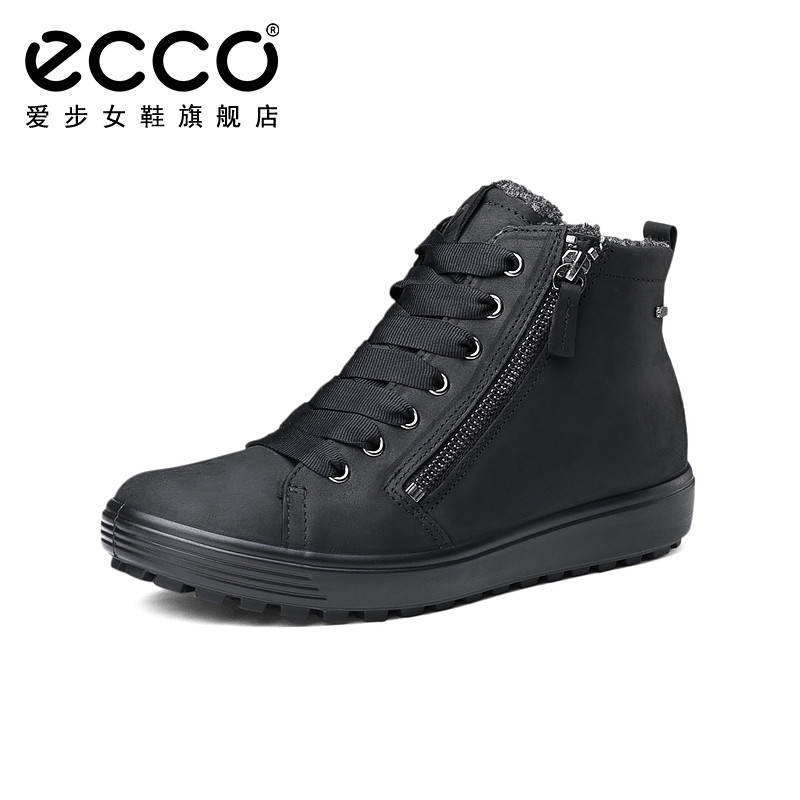 ECCO love step sports high-top shoes casual shoes women's black high-top cowhide shoes women's soft cool No. 7 450163